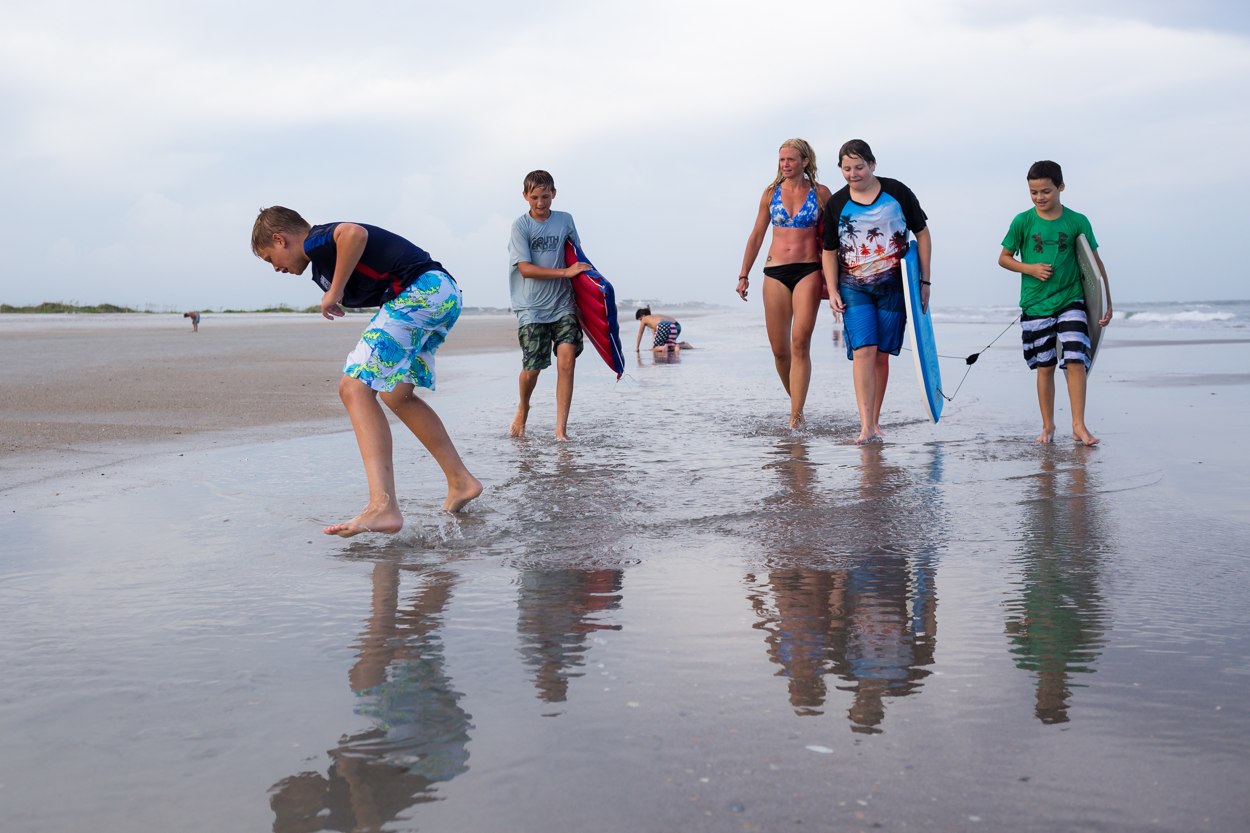 Wilmington, NC has got to be one of my favorite places on earth! Last month we were lucky enough to spend a week with good friends exploring the downtown area and beaches. There's so much happening in the downtown area; excellent food, breweries turning out delicious craft beers, a vibrant music and arts scene. And the beaches were killer!! The water was so clean and the waves almost scary, just enough to make boogie-boarding a real thrill and a guaranteed source of exhaustion, and an early bedtime! My only regret is coming home to find there wasn't one picture of me! Ugh. I did all the shooting and never handed the camera off. This breaks my heart and won't happen again. As soon as I got home, I headed to the camera store and bought myself a remote for my camera. From now on, I'll get in the frame every now and then. I want my kids to know I was there having fun with them. Hope you enjoy looking through our "vacation photos". I promise not to pull them out at Christmas.
