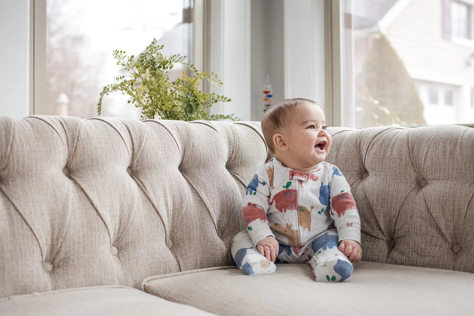 There actually isn't a single best age that works for every baby. Having said that, lots of parents choose to have their newborns photographed in their first two weeks of life, while they are still sleepy, or as I like to say, “fresh”. When photographing newborns at-home, I always recommend waiting until the 4-6 weeks mark. This way mom and dad (and any siblings) have adjusted a bit, and gotten some sleep hopefully! My favorite time for an “older” baby photo session is around 6 months. This is when babies are more interactive and connected with the parents and siblings (or pets). Below is a photo from a recent baby photo session I did right here in Ridgewood. In the end, the best age for a baby photo session will depend on the style of photography you're looking for and your personal preferences.